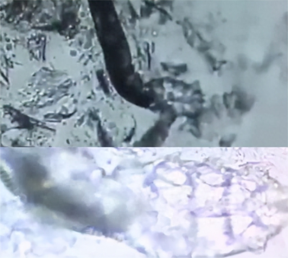 我们的脸上通常有两种螨虫,主要是毛囊蠕形螨和毛囊皮脂螨。一些研究人员从皮肤挤出的白色分泌物中观察到它们的样子: