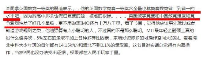 而何猷君真的是超级数学天才吗?有人就指出他参加的数学竞赛缺乏含金量。MIT的金融硕士并没有什么值得炫耀的。MIT是世界名校,不过何猷君能进MIT和他家境好有关。
