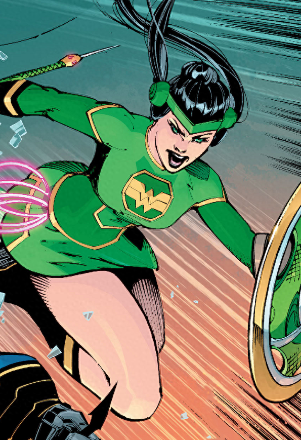 王戴兰,起源&能力不详。应该会延续戴安娜的设定,和亚马逊一样是住在某个岛上的神秘一族,腰上系的和真言索套很像!她和王柏西一起被欧曼博士召唤去制服失控的孔克南。3位就此结识,中国正义联盟也渐渐成型。