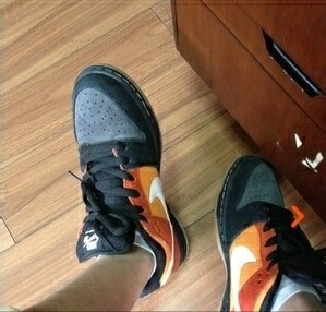 拿到鞋子先看是不是公司货,因为大家都想买公司的,这里以小野牛为例子,本人购买过的。很好看的一双SB ,看包装先,蓝盒子有无公司货的三防标示。