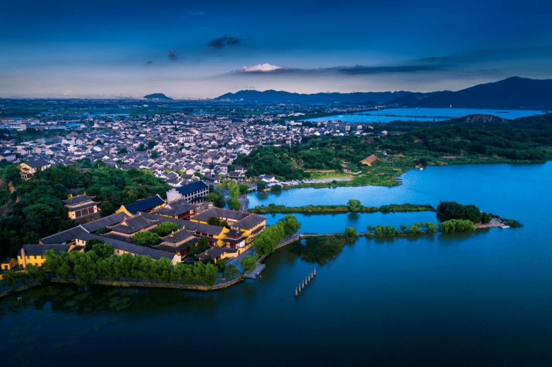 中国历史文化名镇鸣鹤古镇(属观海卫镇)位于慈溪东南部,始建于唐开元年间,是慈溪市唯一遗存的具有典型江南古镇风貌的古镇,有着“鹤皋风景赛姑苏”的美誉。鸣鹤古镇依白洋湖而建,并紧临五磊山风景区,是名副其实的山水古镇。镇内保存有古塔、古桥、古巷等,1700多年历史的浙东第一古刹——五磊寺和创建于梁大同年间的金山寺,也临近这座小镇。