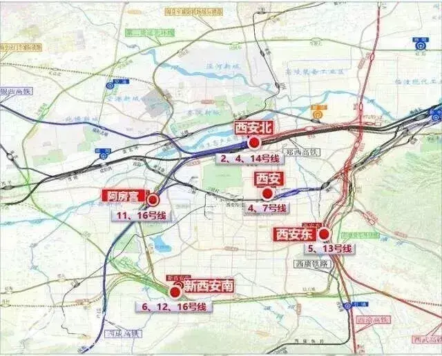 正在规划修建的新西安南站地址拟在西安电子科技大学南侧,这座特等高铁/火车站规模达到了13台26线,西渝、西武、西成、西长等多条高铁动线都交织于此,建成后还将引入地铁6、12、16号线,规模之宏达,动线之齐全,绝对值得期待。