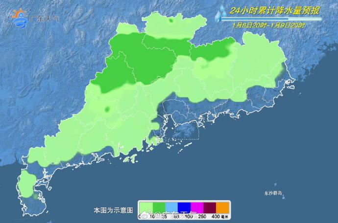 受弱冷空气伴降水影响,1 月 9 日至 11 日广东或出现云里雾里的 " 假回南天 " 效果。但这种天气效果并非暖湿气流反攻导致空气露点温度高于地面温度产生,所以并非真正的 " 回南天 "。雨雾天气可能导致能见度低,需留意交通安全。