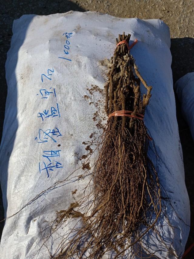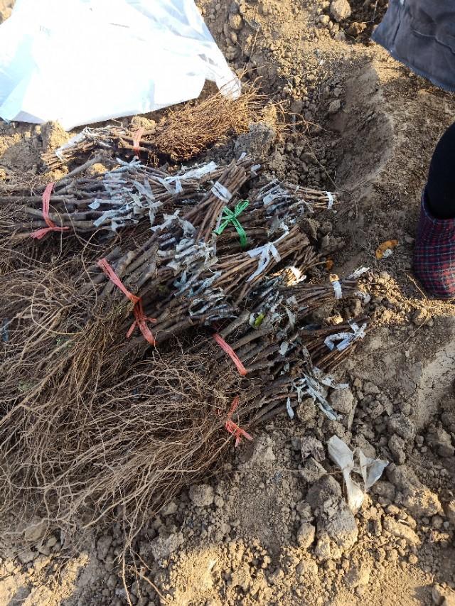 甜蜜蓝宝石葡萄苗:中熟品种,露地8~9月成熟,成熟后不落粒、不烂尖,挂树1个月以上,耐贮运。天然无核,果穗较大,易形成1000克以上的大穗,自然无籽,果粒不用激素膨大也能达到10克左右。果粒长圆柱形,状如小手指,长5cm左右。果色蓝黑,着色快速而均匀。刀切成片,风味纯正,脆甜无渣,可溶性固形物20%以上,干燥少雨地区糖度更高,容易晒成蓝黑色大型葡萄干。果粒不拥挤,无破粒,疏果省工。果刷坚韧,成熟后不易掉粒。