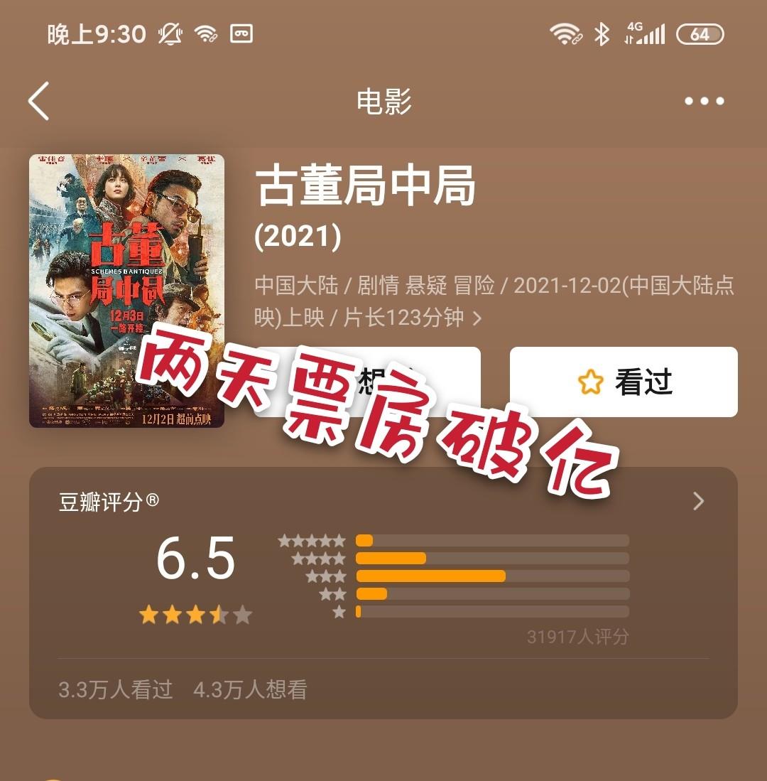 上映2天,豆瓣评分6.5,一个还算说得过去的及格分;票房过亿,在这个季节也还算说得过去。