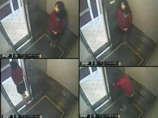 画面中的蓝可儿身穿红色上衣搭配拖鞋,一身休闲装扮。在刚开始的监视器画面中,不难看出,蓝可儿在走进电梯以前是没有任何异状的。可是蓝可儿走进电梯以后,整个人的状态呈现了一百八十度的大转变。他像是遇到了什么紧急事情一样。突然的弯下身,并把每个楼层的按钮全都按了一遍。但很奇怪的是,当时的电梯门在蓝可儿按完按钮后没有立刻关起门来,而是纹丝不动的一直敞开着电梯门。