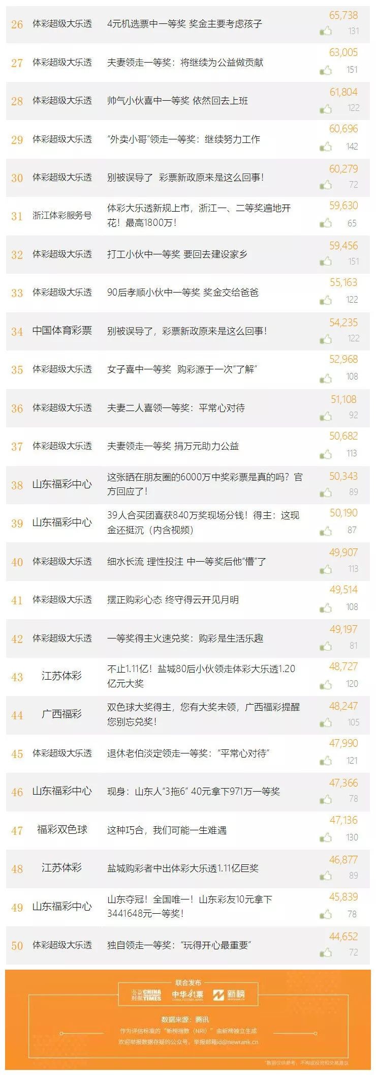 公益时报中华彩票将联合新榜推出彩票行业新媒体影响力指数--“彩榜指数”。