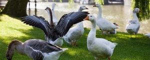 生活习性:大雁喜欢在溪流、水库边生存。鹅是由野生鸿雁逐渐驯化杂交而来的,属于家禽,一般人们用来饲养它。