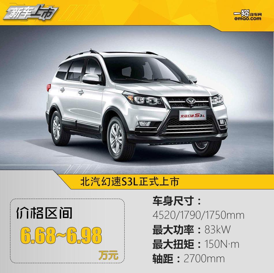 9月26日,北汽幻速S3L正式上市,新车搭载1.5L发动机,匹配5速手动变速器,并采用七座布局,共推出两款车型,其售价区间为6.68万-6.98万元。