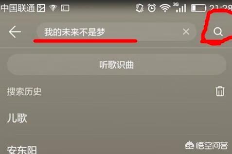 3、如:我的未来不是梦,然后点击右手边的放大镜似的图标进行搜索。