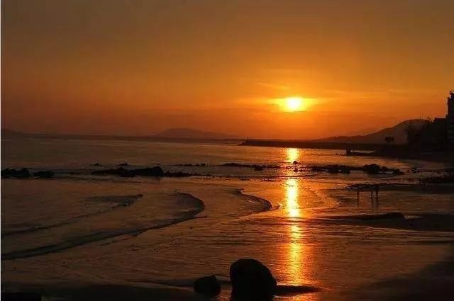随着落日余辉淡化,映照在海面上的色彩也由赤红、丹红、淡红变为暗红。红日将近落山时,万道霞光从天际直射而上,把西天的云彩烧成彤色,火红的太阳映衬出鲜明夺目的海面鳞光,它们互相辉映,浑然一体,给人以美妙的视觉享受和无穷无尽的睱想。