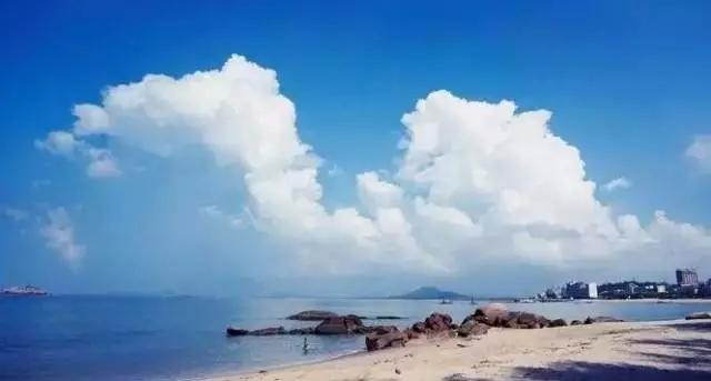 它东西两侧有石山岬角拱卫,山上象形造型众多,密林环抱、海滩水质清澈、坡度平缓、沙质洁净。