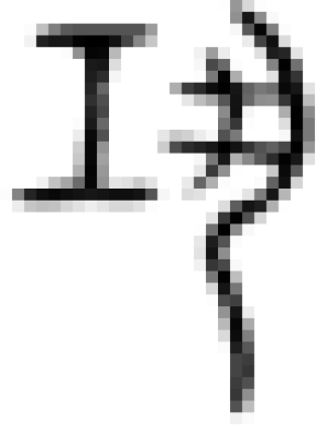 1.一上P11,“石五行”字的配图画的是两块形状不规则的石头。按,“石”无定形,所以古人用如下图所示的石制的三角形乐器“磬”,来代表“石”字,甲骨文如下: