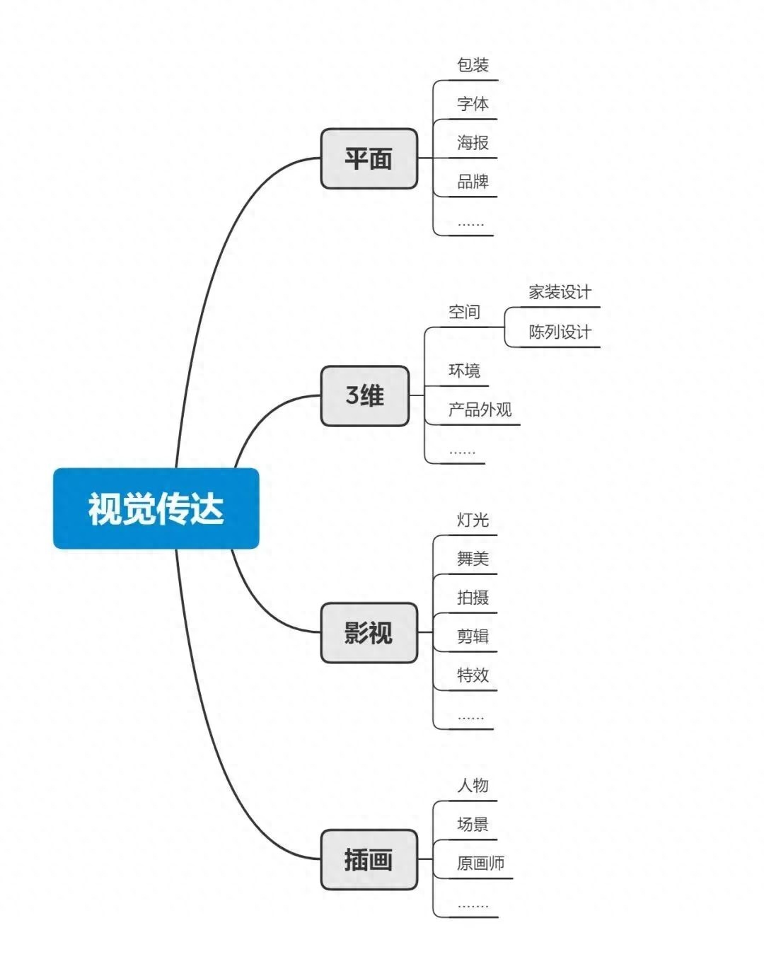 ,主要有:标志设计、字体设计、形象识别、包装设计、图形创意、书籍装帧、广告设计、展示设计、网页设计、交互设计等等。