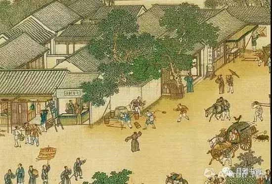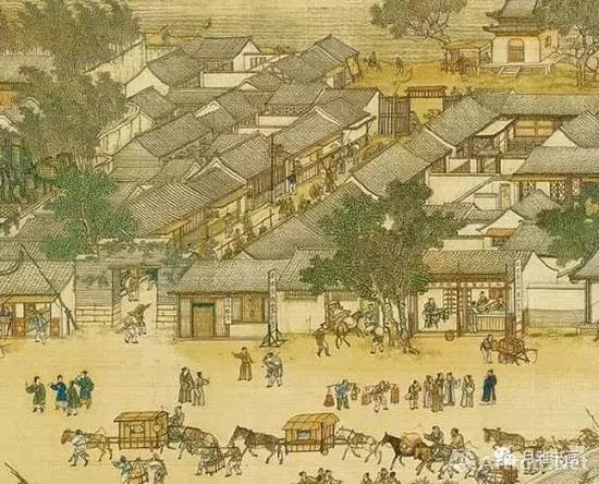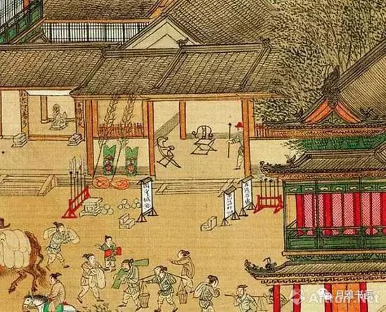 张择端的本子里没有任何城防,也没有军队习武,画中进了城的第一家店是一个税务所,可以看到当时已经不用铜钱结账了,是用纸币当时叫交子结账了(图10)。