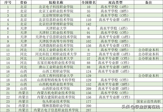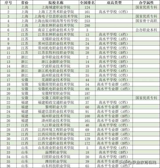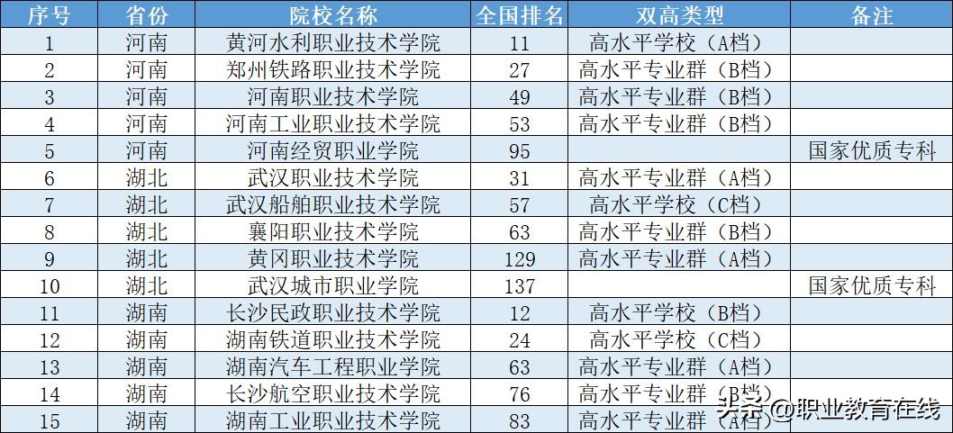 各省市高职院校的排名情况。