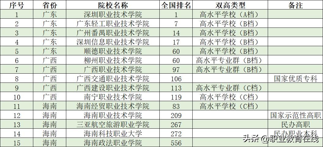 需要特别说明的是,职业院校有全国影响力的院校数量毕竟有限,我们主要是按区域对各个省份的职业高等院校进行排名。