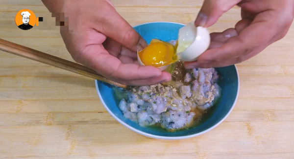 7、把螺壳捞出。将鱿鱼块和螺肉一起放入料理机中打碎,然后倒入碗中放少许盐、姜汁、葱汁、料酒、胡椒粉、鸡蛋清一个朝一个方向搅拌上劲,搅拌时间要长一点,这样搅拌好的螺肉和鱿鱼才会有弹性