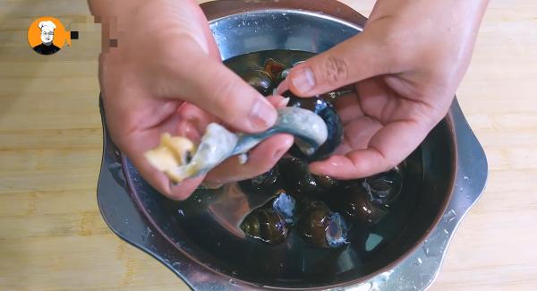 5、再把螺壳放入锅中煮10分钟,这样可以彻底杀死寄生在螺壳上的寄生虫,再把螺肉撒上少许盐,用手揉捏片刻,去掉螺肉上面的泥沙,洗干净备用