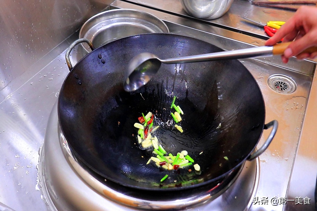 3.锅内烧油,油烧热以后放入葱姜蒜、几粒干辣椒、几粒花椒翻炒出香味。