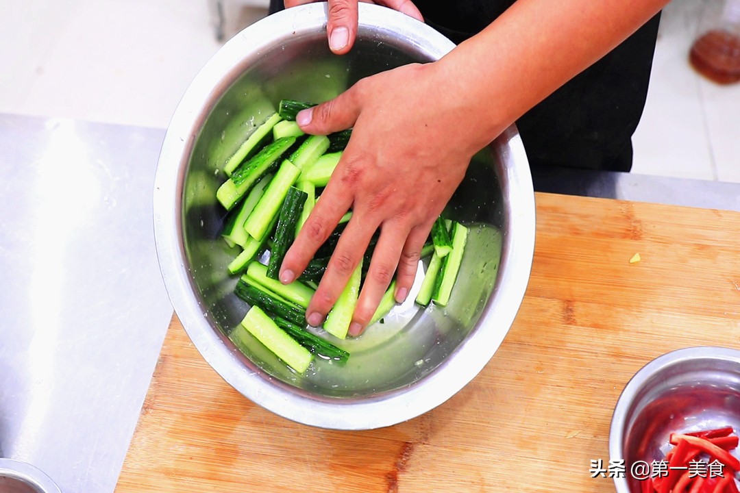 黄瓜先腌制再调拌,口感更脆、更容易入味,不会出水变得齁咸。
