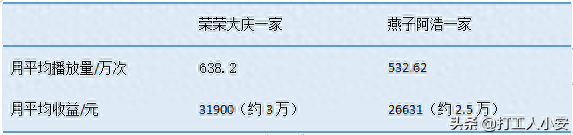 哈哈,他们的粉丝朋友们有没有惊到?!别再让人家出去找工作了,如果每万次收益真的有50元,做视频未尝不可。在家可以干农活,又能照顾父母孩子,不用考虑工作中可能出现的乱七八糟的事,何乐而不为?!上面的柱状图之所以把他们两家每家各自的账号一起统计的,是因为之前阿浩更新的频次太少啦,燕子的比较多,继续加油哦。不过燕子他们也在网上卖自家种的桃子和米线,这也是一笔不错的收入。