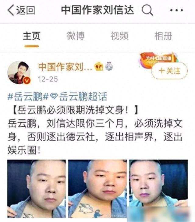 自从某刘作家前面有限于大爷三个月戒掉抽烟喝酒烫头,后有限郭老师三个月洗掉纹身后,很多人就注意到了德云社的纹身。不过讲真的,某这位作家这是要抛下自己的本职工作,立志要做娱乐圈的“纪检委”?动不动就让人滚出娱乐圈,有点意思!