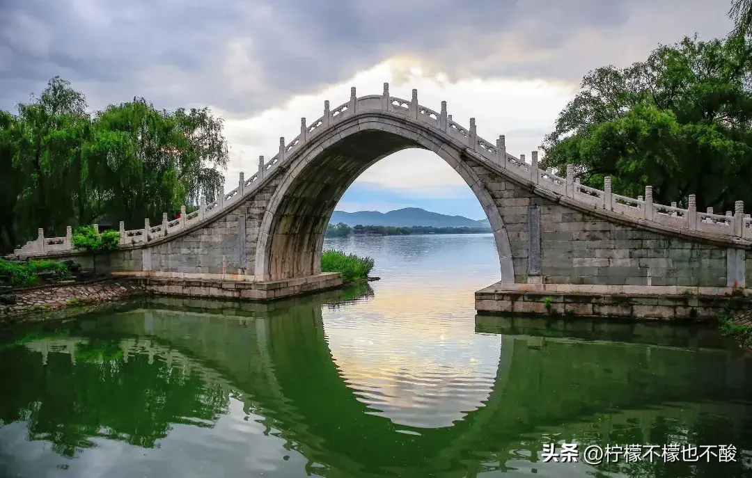 9. 玉带桥:位于北京市海淀区,建于清朝,是颐和园内最具特色的桥梁之一。玉带桥用汉白玉修建,形似玉带,造型优美。