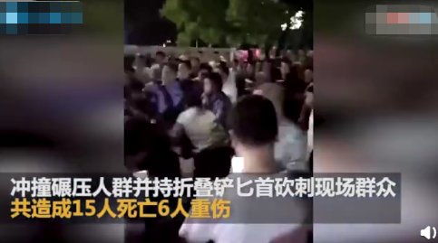 据目击者介绍,当时广场上很多群众正在散步或跳广场舞,一辆红色SUV突然冲向人群,造成恐慌。现场视频显示,十多名群众倒在广场上,能听到救护车和警车声,SUV前脸已被撞坏。