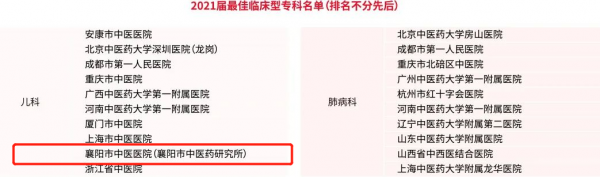 在2021年最佳临床专科榜单中,共有111家医院上榜。湖北省中医院入选肾病科、针灸科,武汉市第一医院入选脾胃病科、肾病科、针灸科,武汉市中医院入选风湿科,襄阳市中医院入选儿科、骨伤科、脑病科。