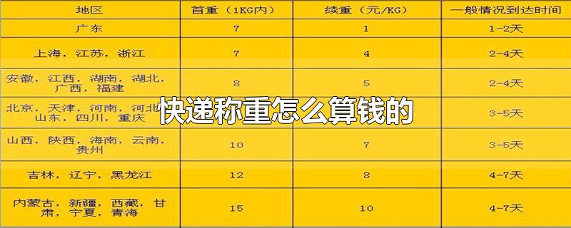 快递称重是按快递物品的实际重量算钱的,以千克为单位,称重方式分为首重和续重。如一家快递首重8元/千克,续重6元/千克,那么发送一件不超过1千克的快递就是收费8元,超出1千克后的重量就按续重收费,就是一千克6元。各家快递的收费标准不一样。
