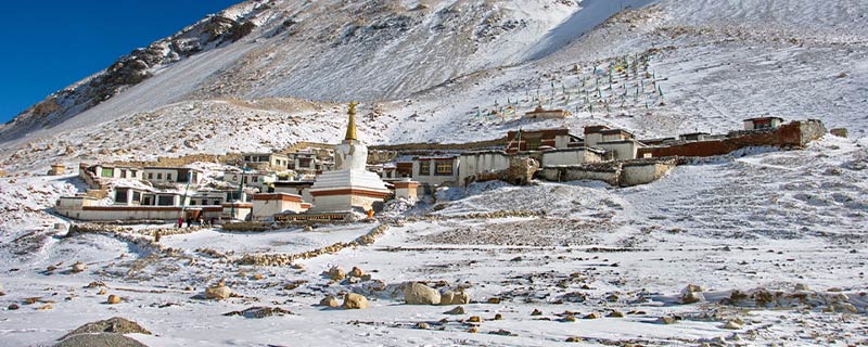绒布寺也叫做龙布寺,全称是拉堆查绒布冬阿曲林寺,属于西藏宁玛派寺庙,位于西藏日喀则地区的定日县巴松乡南面珠穆朗玛峰下绒布沟东西侧的“卓玛”(度母)山顶,距离驻地九十公里,海拔大约是五千一百五十四米,地势高峻寒冷,是世界上海拔最高的一个寺庙,位于珠穆朗玛峰脚下的绒布冰川的末端,是富有地方特色的一个僧尼混居寺庙。