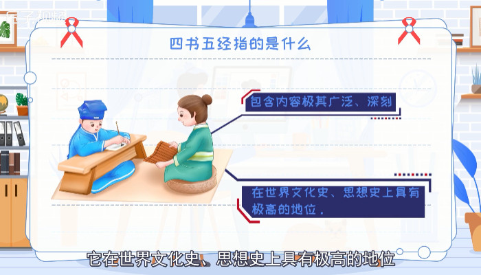 四书五经,是“四书”与“五经”的合称。四书指的是《大学》、《中庸》、《论语》、《孟子》,五经指的是《诗经》、《尚书》、《礼记》、《周易》、《春秋》。