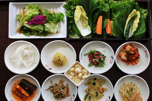 这家店不仅是京城第一批韩国烤肉餐厅,店的正宗也体现在它的每一面。比如从韩国带来的木炭+石头混合的烤板,绝对是原装原态。在韩国传统的烤肉都是用这种倾斜的石板,油会自动流入油槽,肉烤出来香而不腻。再比如,这里每天赠送的八道小菜全是当天制作,虽然免费但也是道道精彩。另外赠送的烤肉蘸酱和卷肉蔬菜也是专业级的。