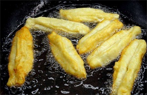 植物油不耐热,油炸时的温度却可以达到160-300℃,油条在炸制过程中会发生反式异构化、热氢化、热裂解、环化、醚化、聚合等多种化学反应,从而产生大量的有害物质,尤其是油脂经过反复高温加热后会使反式脂肪酸、二聚体、三聚体等有毒物质持续升高。