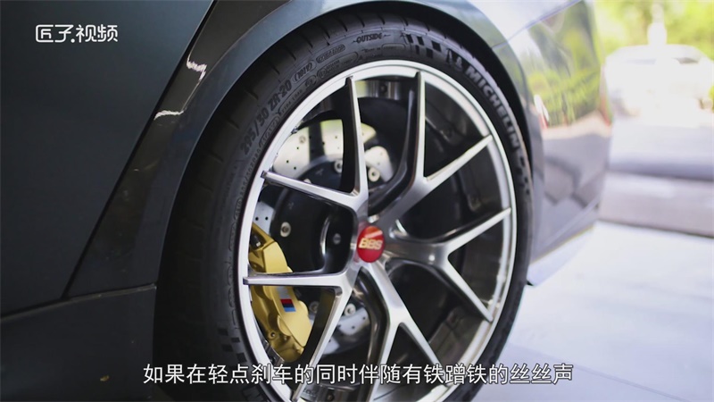 如果在轻点刹车的同时伴随有“铁蹭铁”的丝丝声,此时刹车片必须立即更换。因为刹车片两侧的极限标识已经直接摩擦刹车盘,证明刹车片已经超过极限。