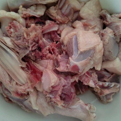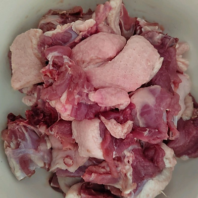 2、把鸭肉跺着块,洗干净沥干水分,备用
