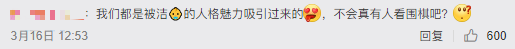 高赞回复为:“我们都是被洁宝的人格魅力吸引过来的,不会真有人看围棋吧?”