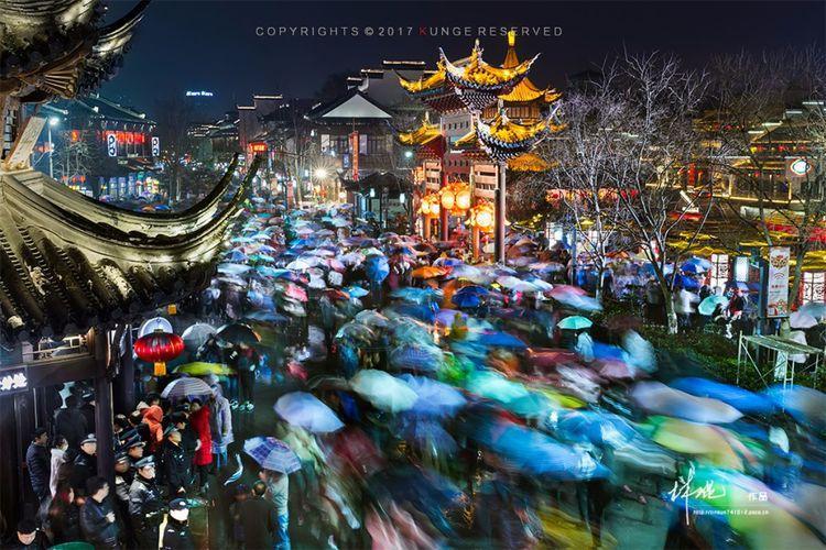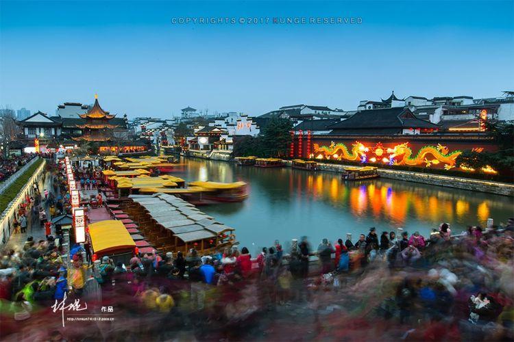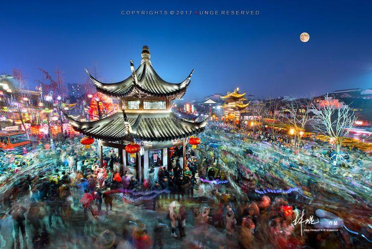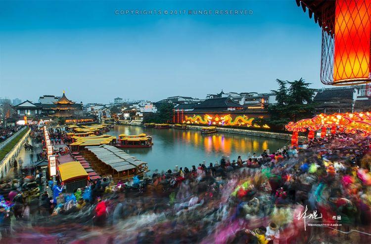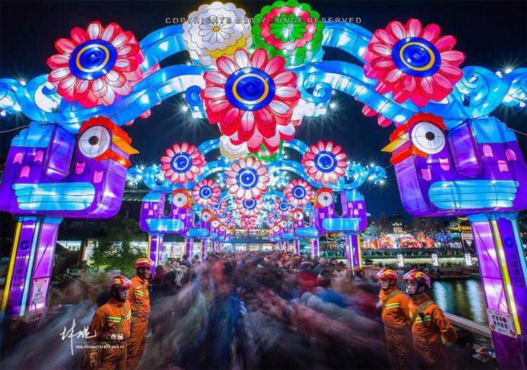 每年的正月十五那天据说至少四五十万人涌入夫子庙,几公里外就开始戒严。元宵节夫子庙到处都被各色的花灯充盈的年味十足。