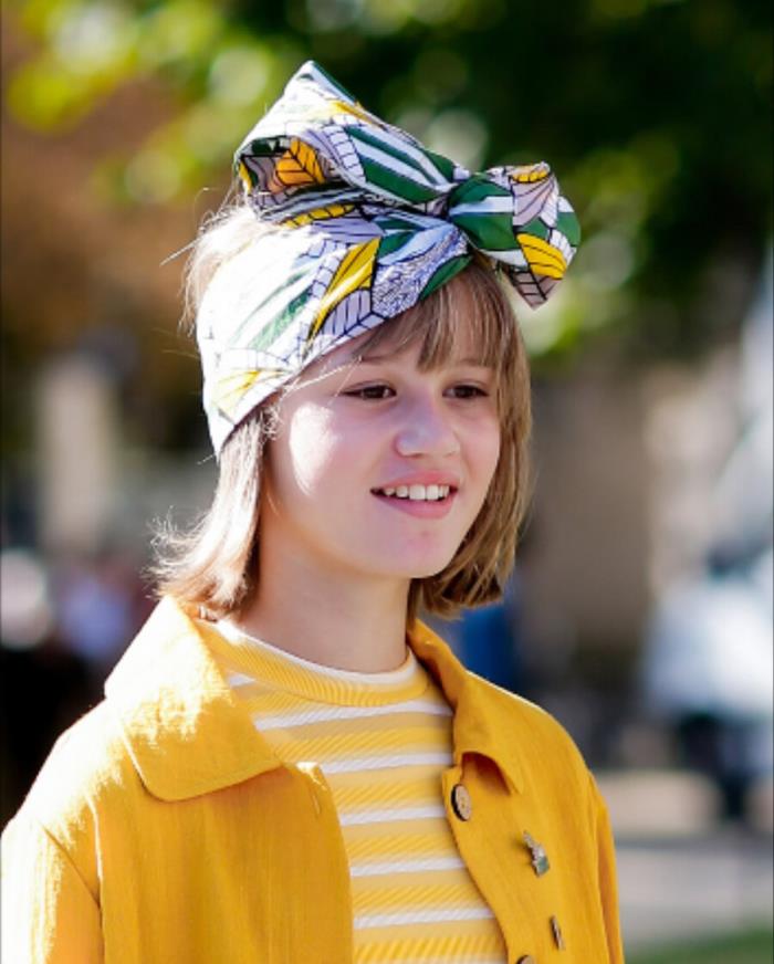 丝巾还可以做成一个大大的蝴蝶结发箍戴在头上,复古又浪漫,还蛮特别的。