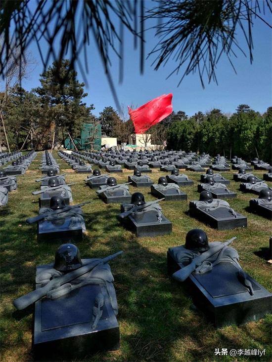 走进去之后,就能看见一些革命烈士的陵墓了,每个墓上面有整齐的头盔和一杆枪、一束花,让人看了特别的感动。