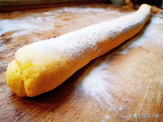 面团揉光滑后,我们搓成长条,揪成大小合适的面挤子。