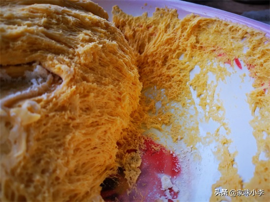 最后:揉好的面团,我们用盖子或是盆扣住,以免面团表面发干。冬天比较冷,家中有暖气的话,可以把盆放在暖气片上发面,家中若没有暖气,可把盆包好放在电热毯上,用被子裹的严严实实的,这样20分钟面团就能发满盆。发酵环境的温度最好控制在30度至35度之间,不要超过40度。