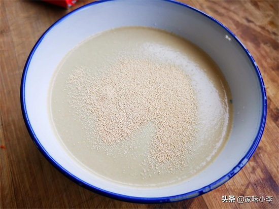 首先:将白糖、酵母、30-40度的温水全部混合在一起,朝一个方向搅拌,待白糖酵母与温水融合,静置5分钟备用。少量的白糖能促进酵母的活性,加快发酵的速度。具体面粉、酵母粉和白糖的比例是500:5:10,冬季的时候适当多加1到2克酵母粉,夏天的时候可以适当减去。