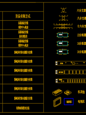 综合布线系统的弱电符号主要有强电插座,网络管材插座,电话插座,TV插座,光纤插座,AP接入点,网络配线架,110电话配线架,光纤配线架,光纤熔接盘等等。