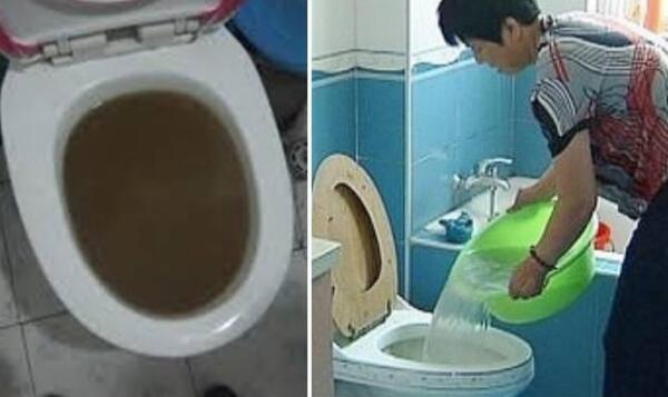厕所堵了怎么疏通,接一桶水往里冲(用马桶刷使劲捅)