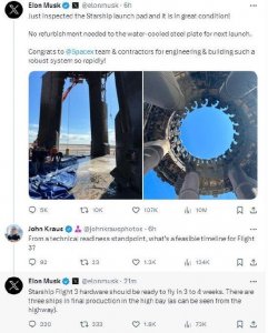 - 人类最强火箭!马斯克:第三艘星舰飞船可在 4 周内准备好