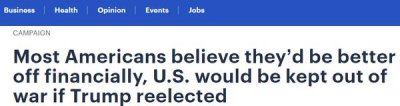 - 大多数美国人认为 , 如果川普赢得大选 , 他们的经济状况会更好