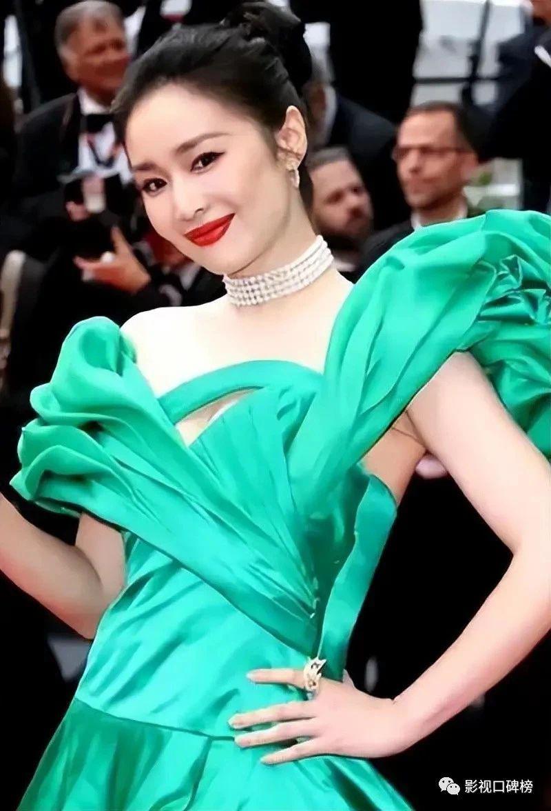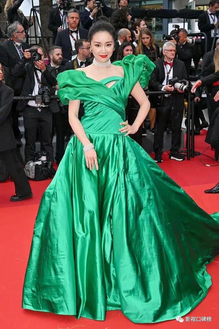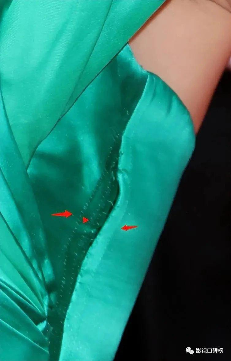 高叶首次参加戛纳电影节走红毯,穿着一袭绿色长裙走红毯,热烈红唇,戴着珍珠配饰增添了贵气。礼服是丝绸材质,稍有不注意就容易出现褶皱。眼尖的网友发现,高叶礼服有鏠补的痕迹。