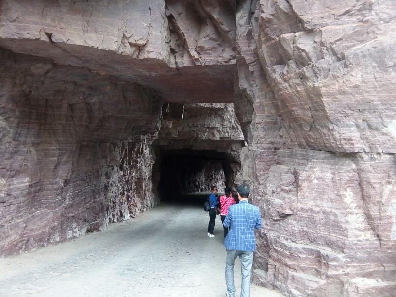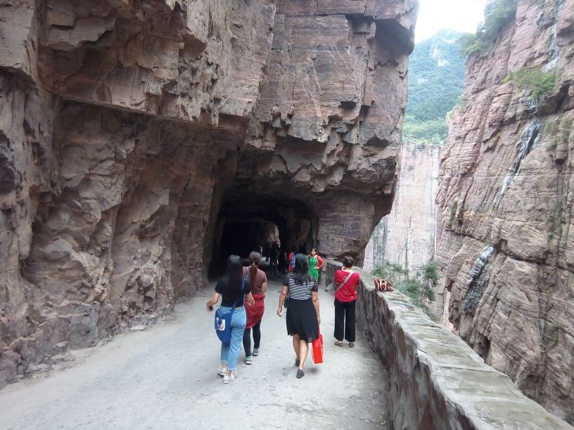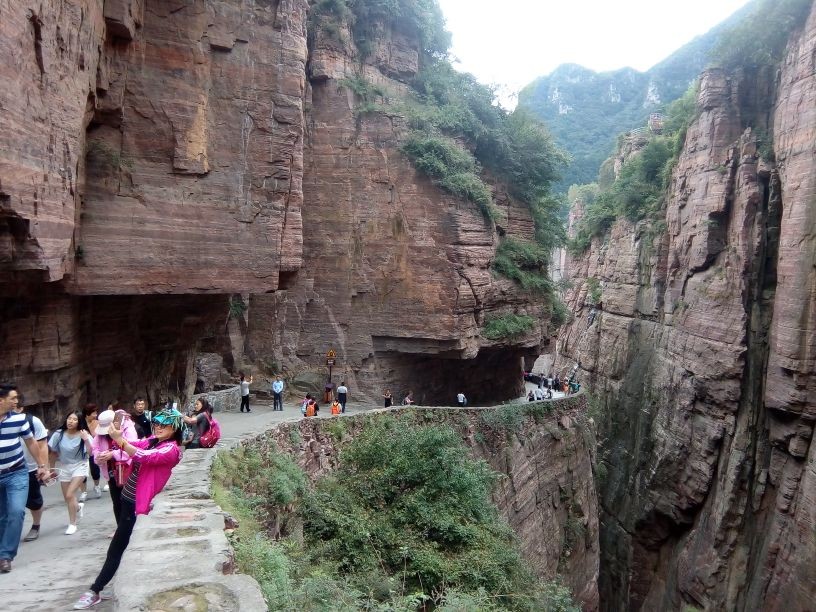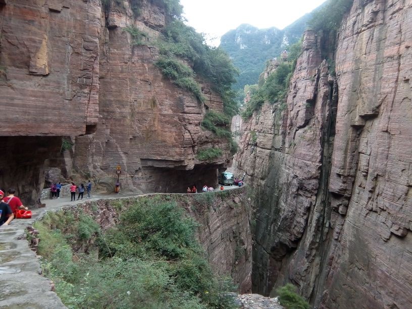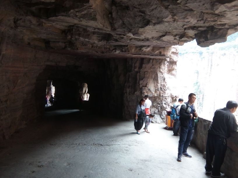 郭亮村挂壁公路,长1250米,宽约6米,高的4米。1972年3月开工,1977年5月通车。开凿这条公路,共耗钢钎12吨,铁锤2000个,像传说中的老愚公那样,心比铁坚,志比钢硬。